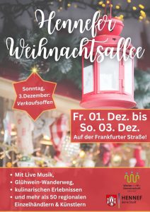 Auf der Weihnachtsallee präsentiert sich nicht nur die Werbegemeinschaft selbst, wir bieten dort auch Ausstellungsflächen an, auf denen Kreative und Künstler aus Hennef und Umgebung sich oder ihre Produkte präsentieren können. Bewerben kann man sich noch bis zum 5. November bei Julia Gerlach unter kontakt@werbegemeinschaft-hennef.de.